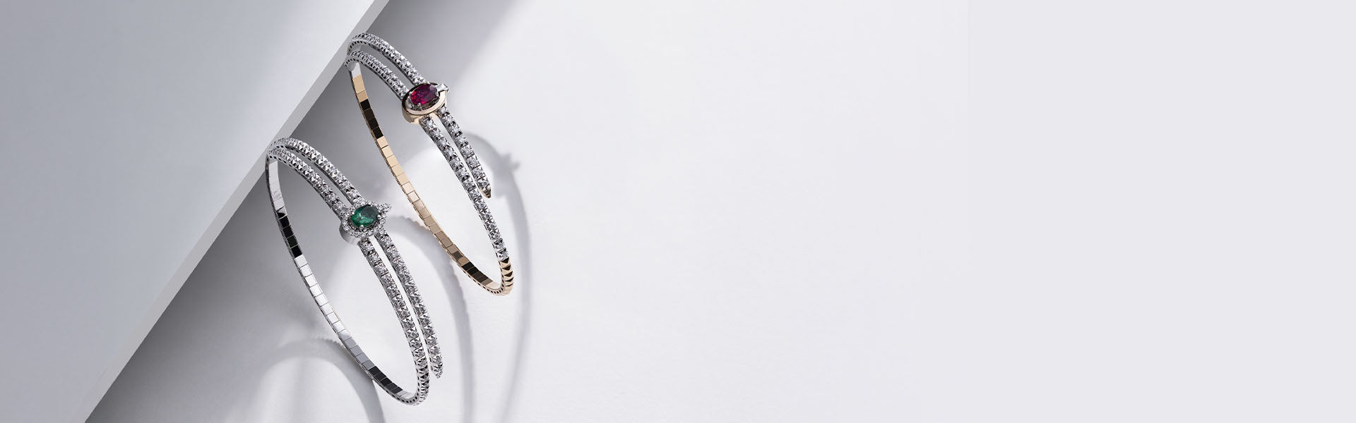 The dazzling trio of sapphire, ruby, and emerald meets diamonds in the Zen Entourage Collection.