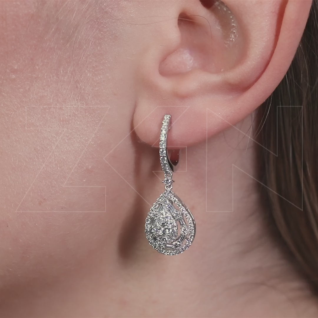 The Design Diamond Earrings by Zen Diamond are a masterpiece of luxury and craftsmanship. Handcrafted from approximately 6.70 g of 14K white gold, each earring features a total of 126 diamonds with a combined weight of 1.65 ct. These include a mix of round-cut and baguette-cut stones of varying sizes, all G color and VS clarity, meticulously arranged to create a striking, multidimensional sparkle. These earrings embody a sophisticated design ideal for special occasions or elevating everyday elegance. Available in white, yellow, and rose gold, each metal option offers a unique character—modern, classic, or romantic. Every pair comes with a certificate of authenticity, premium packaging, and a personalized greeting card.