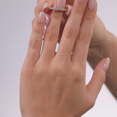 The Eternity Diamond Ring by Zen Diamond embodies everlasting elegance and refined craftsmanship. Handcrafted from approximately 2.20 g of 14K white gold, this stunning ring features 25 round-cut natural diamonds with a total weight of 1.00 ct. All diamonds are G color and VS/SI clarity, meticulously set in an eternity design to ensure continuous sparkle around the entire band. Available in white, yellow, and rose gold, each variation offers a unique aesthetic—modern brilliance, classic warmth, or romantic elegance. Every Zen Diamond ring comes with a certificate of authenticity, premium packaging, free resizing, engraving, and a personalized greeting card.