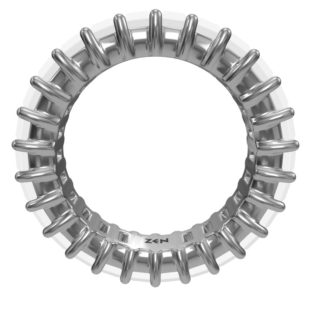 The 3.30 ct. Eternity Diamond Ring by Zen Diamond is put together using approximately 5.32g of 14K gold. This ring holds 26 natural baguette-cut diamonds in total, adding up to 3.30 ct. All stones are F color and VS clarity, set continuously around the band for a full circle of shine. You can get this jewelry in white, yellow, or rose gold. White gold gives a bright, modern look; yellow gold offers a classic, warm tone; and rose gold presents a soft, modern hue. Every Zen Diamond ring comes with an official certificate of authenticity, high-quality packaging in a wooden box, free resizing, free engraving, and a personalized greeting card.
